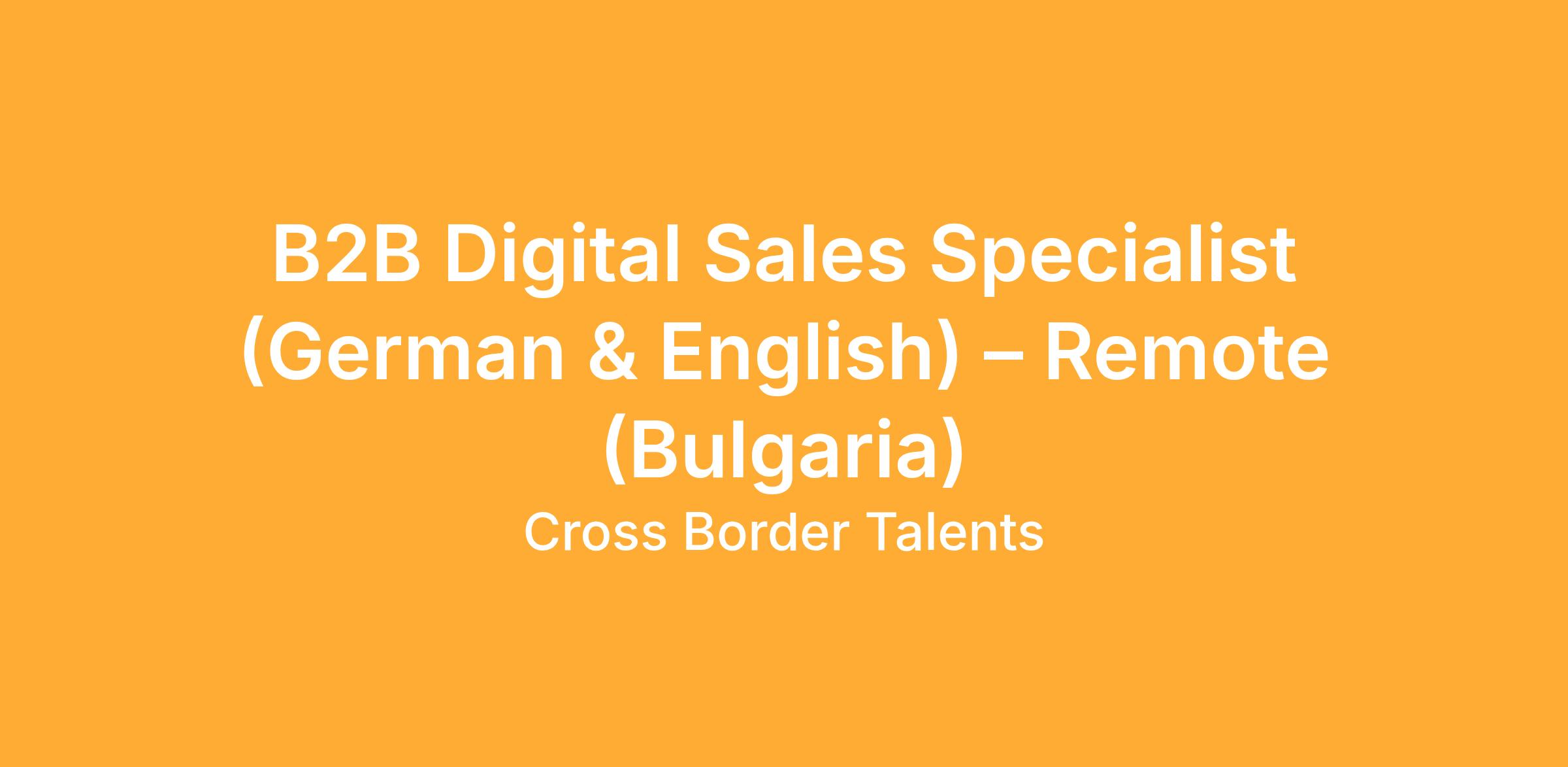 B2B Digital Sales Specialist (German & English) – Fully Remote | Sofia We are hiring a B2B Digital Sales Specialist with native-level German and strong cold calling experience to join an international, tech-driven sales team. This is a full-time fully remote role, contracted in Sofia, within a dynamic digital advertising / tech environment, offering stability, career growth, and relocation support if needed.